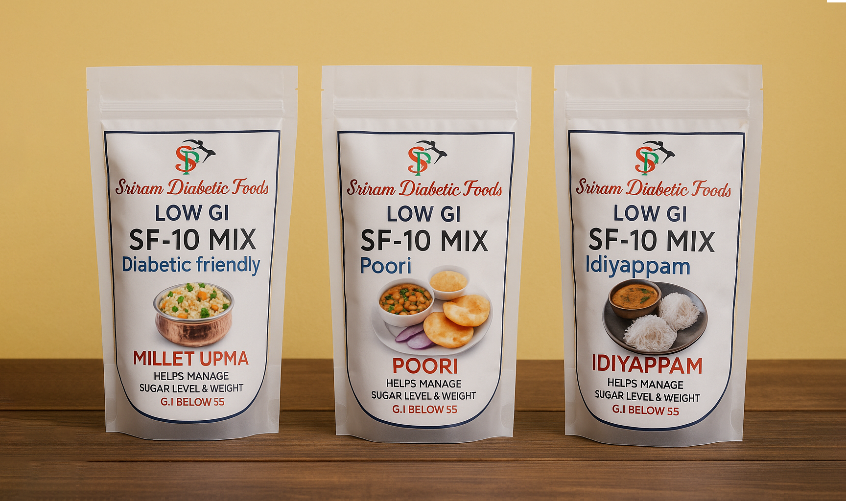 A friend recommended SRIRAM DIABETIC FOODS and their Low GI products. They explained how diabetes management is 50% food, 25% medicine, and 25% physical activity. I started using their multigrain atta, health mix, and dosa/idli mixes and avoided high GI foods.